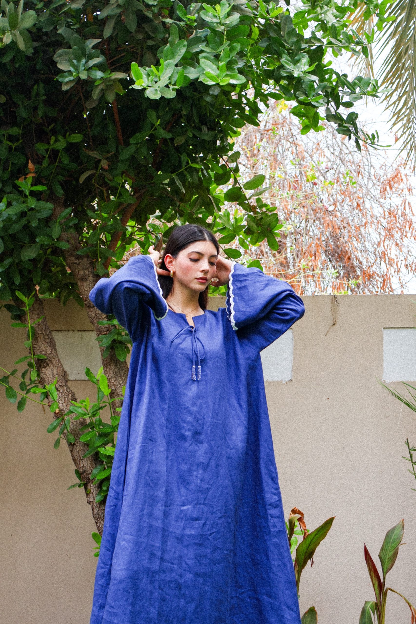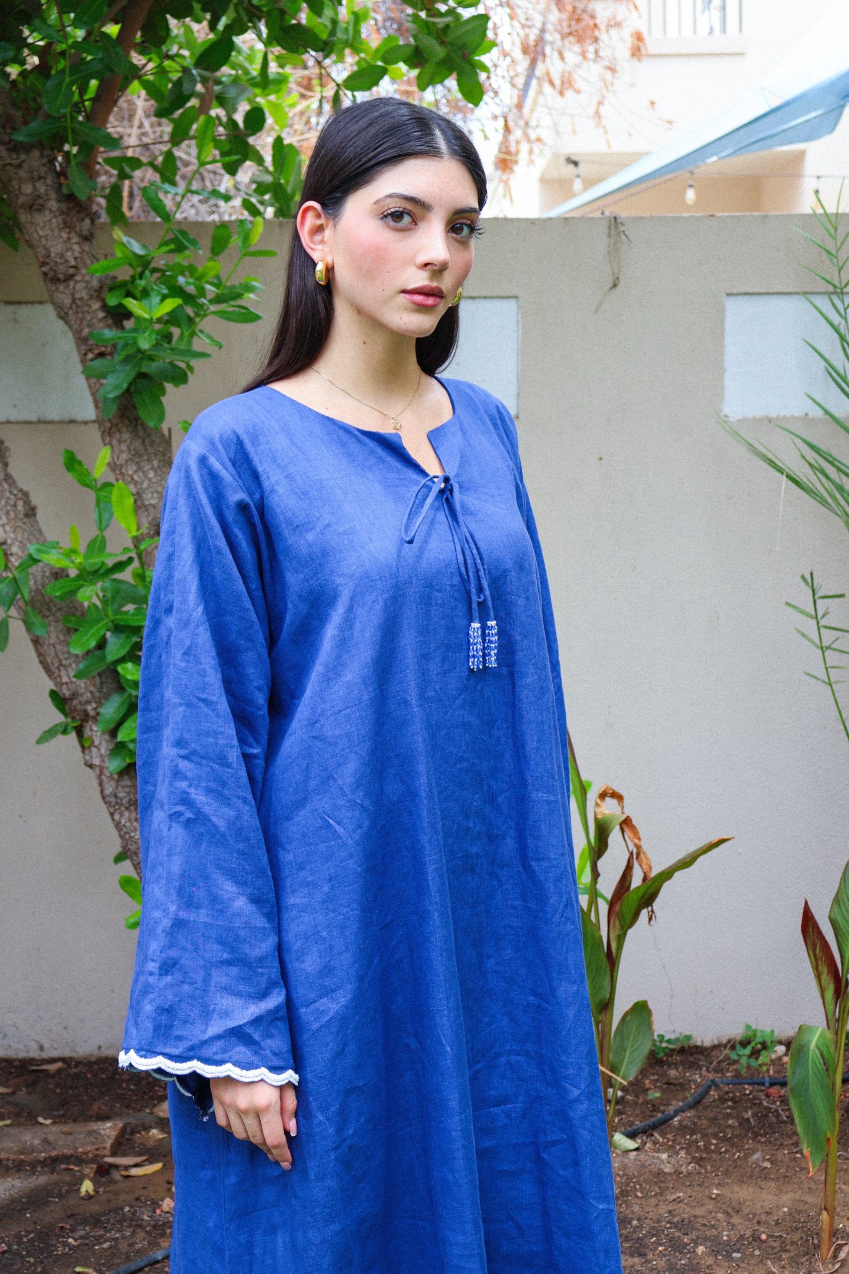 Jalabia with embroidery on the sleeves and beadwork