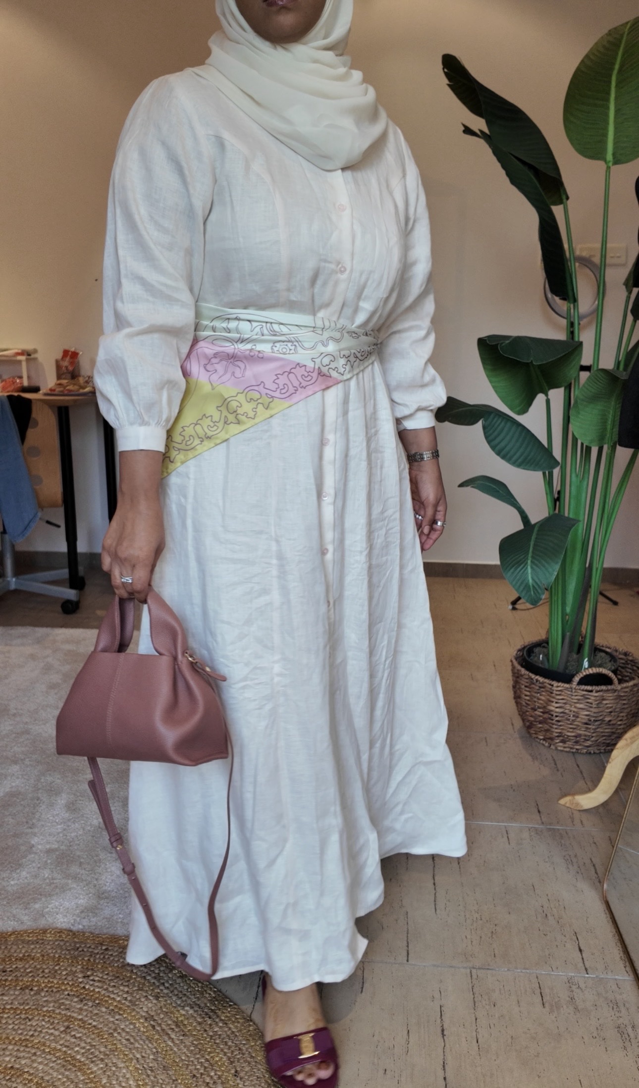 100% pure linen button down dress.